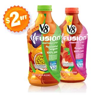Save $2 on one 46 oz bottle V-8 Fusion Goji Raspberry or Passionfruit Tangerine