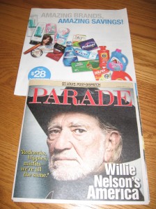 My paper comes with the USA Weekend mag Instead and It also has the same Prilosec, Pepto, Metamucil, and Align coupons. Along with $.75/1 Poise, 15% off $75 or More Purchase at Gap Outlet, 15% off $100 or More Purchase at Banana Republic.