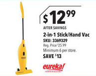 Eureka 2-in-1 Stick/Hand Vac $12.99