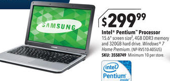 Samsung 15.6″ Laptop with Pentium Processor $299.99