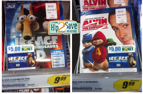 (IMPORTANT NOTE – The Ice Age 3: Dawn of the Dinosaurs Blu-ray 3-disc combo pack is on sale for $9.99, however, the 4-disc 3D combo pack is actually on sale for $19.99. It was placed in the wrong spot at my local Best Buy, as you can see from the pic… so make sure to get the 3-disc Blu-ray combo pack (not 3D) if you want the *HOT* $9.99 sale price!)