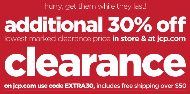 As I’ve mentioned before, through November 3rd, JCPenney.com is offering up an additional 30% off the lowest marked clearance prices with the promo code EXTRA30 at checkout. Plus, choose FREE store pickup on qualifying items at checkout to bypass all shipping charges (won’t show up until final stage of checkout) or get free shipping on orders over $50!