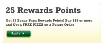 Then the following day, your Papa John’s account will be credited with 25 Bonus Points. You may then redeem the 25 bonus points for a large FREE Pizza with up to three toppings. Keep in mind that you must redeem your Bonus Points by September 29th or they will expire. Go here if you need help with redeeming your points.