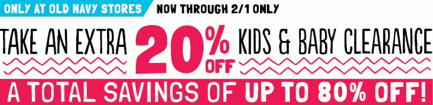 Also, don’t forget! Through tomorrow only, Old Navy stores are offering up an extra 20% off kids and baby clearance for a total savings of up to 80% off. Go here to check out what Hip2Save reader, Nikki, was able to score at her local Old Navy today!