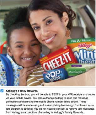 Kellogg’s Family Rewards members! If you have your mobile phone number added to your account, you can text LEGGOMYEGGO to 89332 to score 25 more points! Keep in mind that you must add your mobile phone number and check the box in your profile under Subscriptions (as pictured above) in order to receive these points in your account. If you haven’t yet, be sure to head on over here and register for a Kellogg’s Family Rewards account.