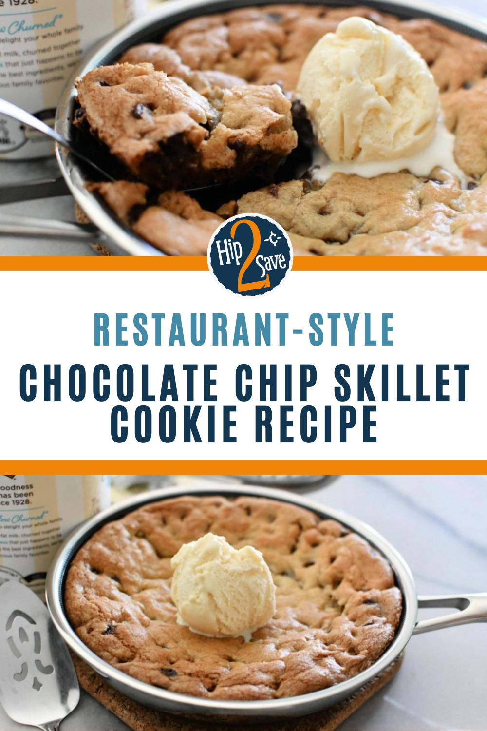 Make this easy and popular restaurant style chocolate chip skillet cookie for dessert! Top it with your favorite ice cream flavor and enjoy the warm cookie dessert!