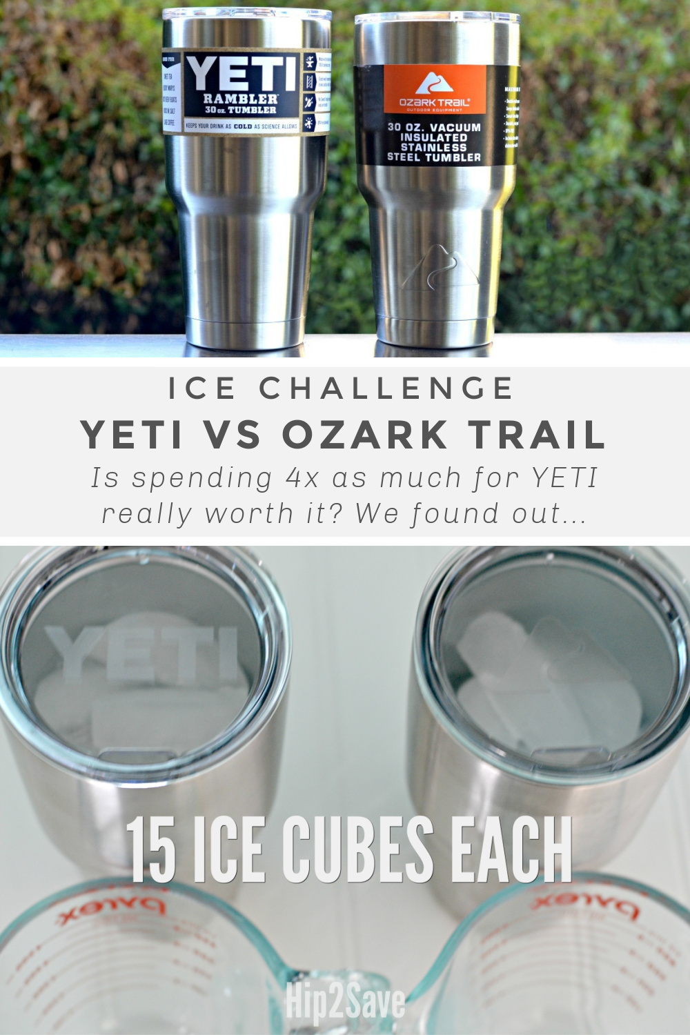 We’re testing the quality between high-end YETI tumblers vs. the very affordable Ozark Trail brand from Walmart.