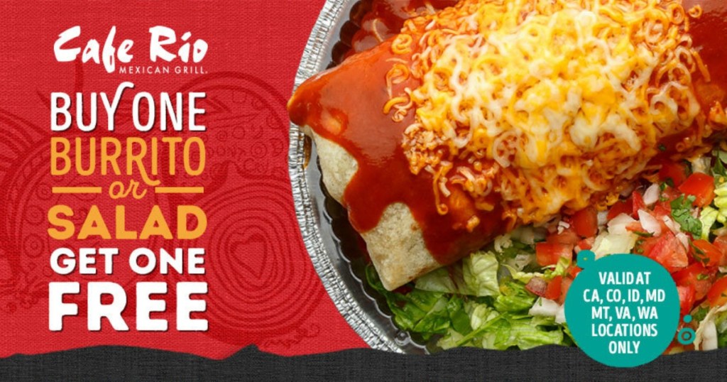Cafe Rio: Buy One Burrito or Salad Get One Free Coupon (Select States Only)