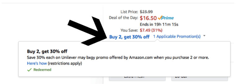 As just one idea, this Dove Men+Care Body and Face Bar 20 Count Pack is on sale for $16.50. AND when you purchase two packages, you’ll save an additional 30% off your total purchase when you apply the promotion found below the price (see pic below) or use the discount code UNILEVERMAY which makes for an awesome deal…