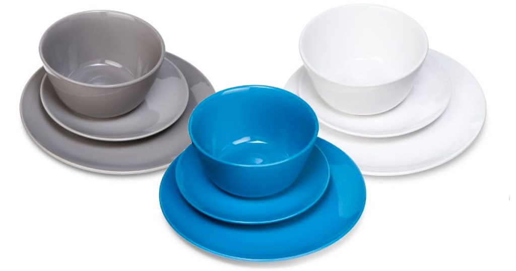 Room Essentials Coupe 12-Piece Dinnerware Set in Red, White, Blue or Grey