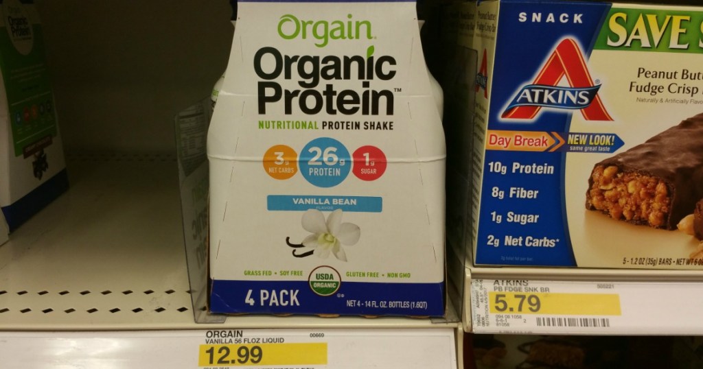 Use the 25% Off Orgain Shake 4 pks regional Target Cartwheel Offer (exp. 6/17) – will deduct $3.25