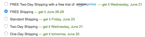 Note: If you do not have prime you can still get free shipping. At checkout, change your delivery option to FREE shipping like the screenshot below.