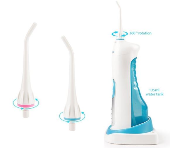 This water flosser has 4 modes depending on your oral care needs. Once fully charged, the flosser can be used 20 times. It comes with a free nozzle, USB charging cable and charging base.
