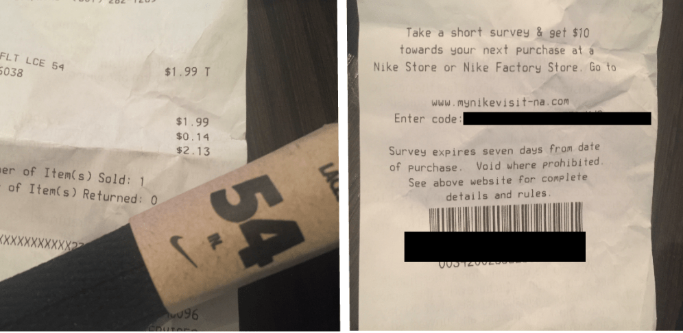 If you do receive this survey offer, simply go to mynikevisit-na.com, enter the code found on the bottom of your receipt and complete the short survey – you have 7 days from your date of purchase to complete the survey. Allow up to 48 hours from the time you have completed the survey to receive your FREE $10 gift code.