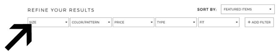 Please note that sizes are limited as this is a clearance sale. To easily find your size, select “Size” from the drop down menu on the left hand side as shown above and choose the size you need.