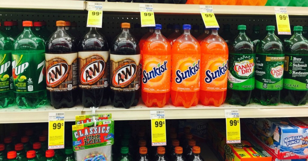Sunkist, A&W, 7Up or Canada Dry 2 liters 99¢ each