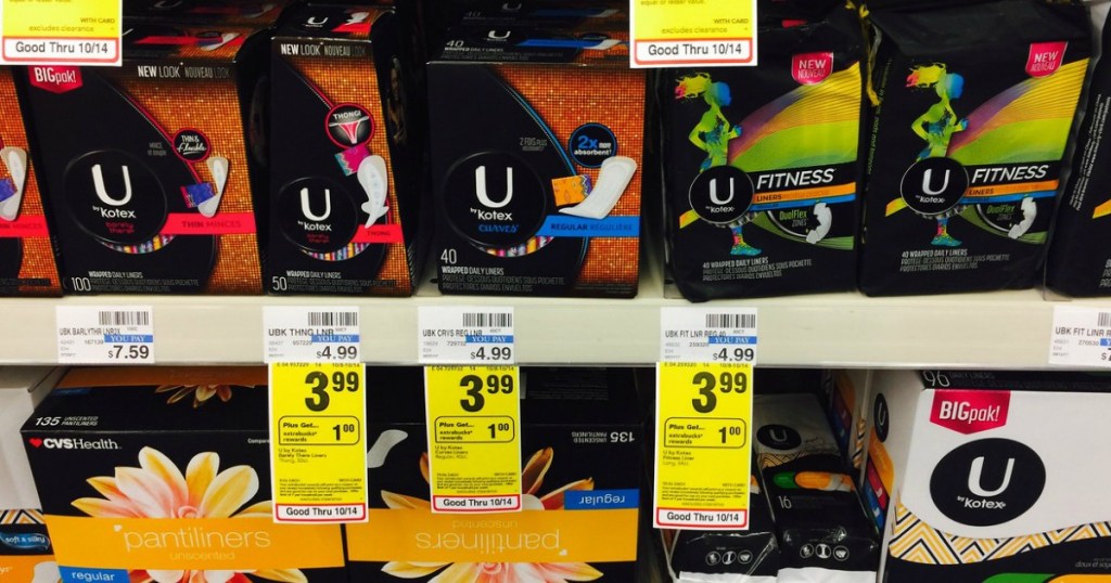 Through October 14th, CVS is offering a $1 ExtraBuck Reward when you buy 1 U by Kotex product (limit 1), which are also on sale for only $3.99. Pair this with printable coupons and cash back offers to score a sweet deal on feminine products.