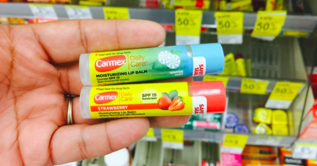 Use two $0.35/1 Carmex Daily Care Lip Balm printable coupons
