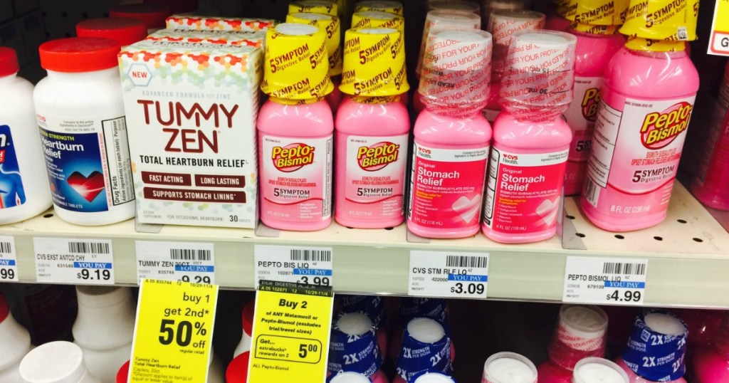 OR the $0.50/1 Pepto Bismol manufacturer’s coupon available on the CVS App