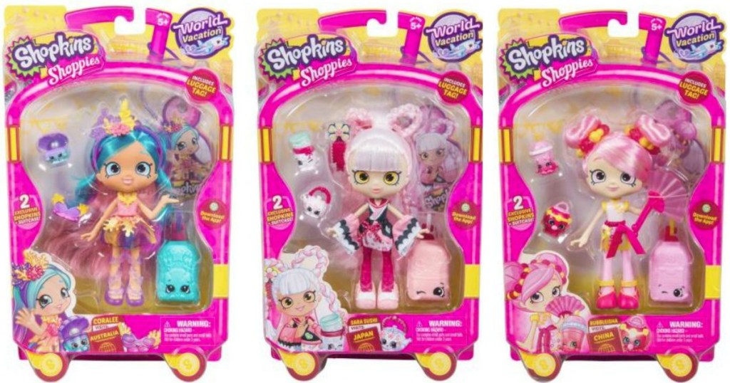 As one idea, you can snag this Shopkins Shoppies World Vacation Themed Dolls Australia Coralee for $6.32 (regularly $14.88)!