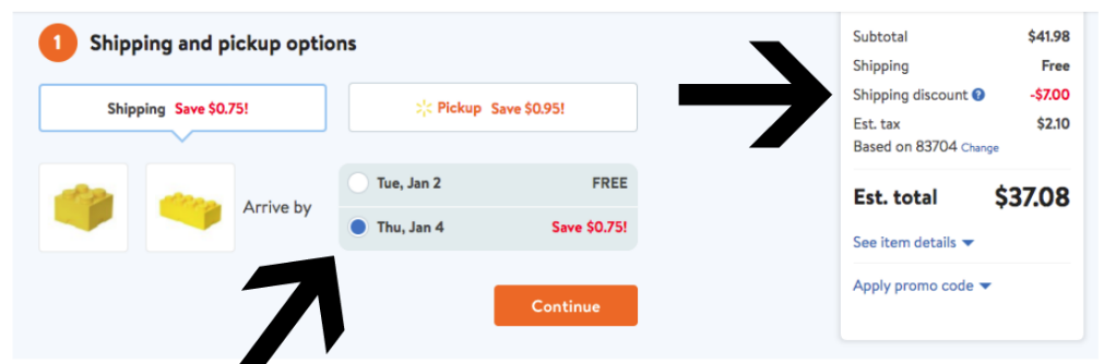 If you are shopping at Walmart.com and purchasing more than one of these items, you may receive an additional discount when you choose to have your items shipped AND have the items delivered two days later. Check this out…