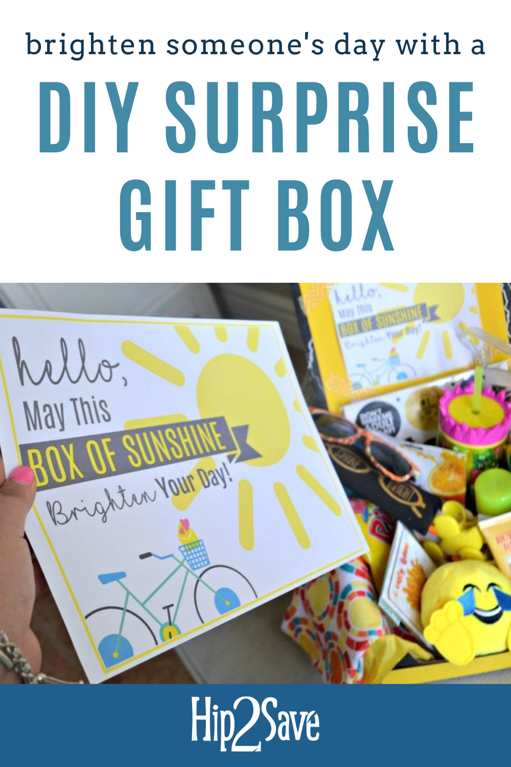 Consider gifting a fun box of sunshine to cheer them up! ☀️ This DIY surprise gift box is easy to make and budget-friendly, too. We’ve even designed a cheerful FREE printable card in a couple of sizes that you can include with your gift.