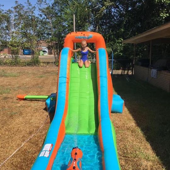 This water slide includes a blower and features a water cannon at the end of the slide. What a fun way for the kids to cool off on a hot, summer day!