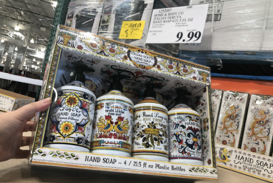 For a limited time, head into your local Costco Warehouse where you may find this Home & Body Co. Italian Deruta Hand Soap Bottles 4-Pack priced at just $9.99 – that works out to only $2.50 per 21.5 fl oz bottle!