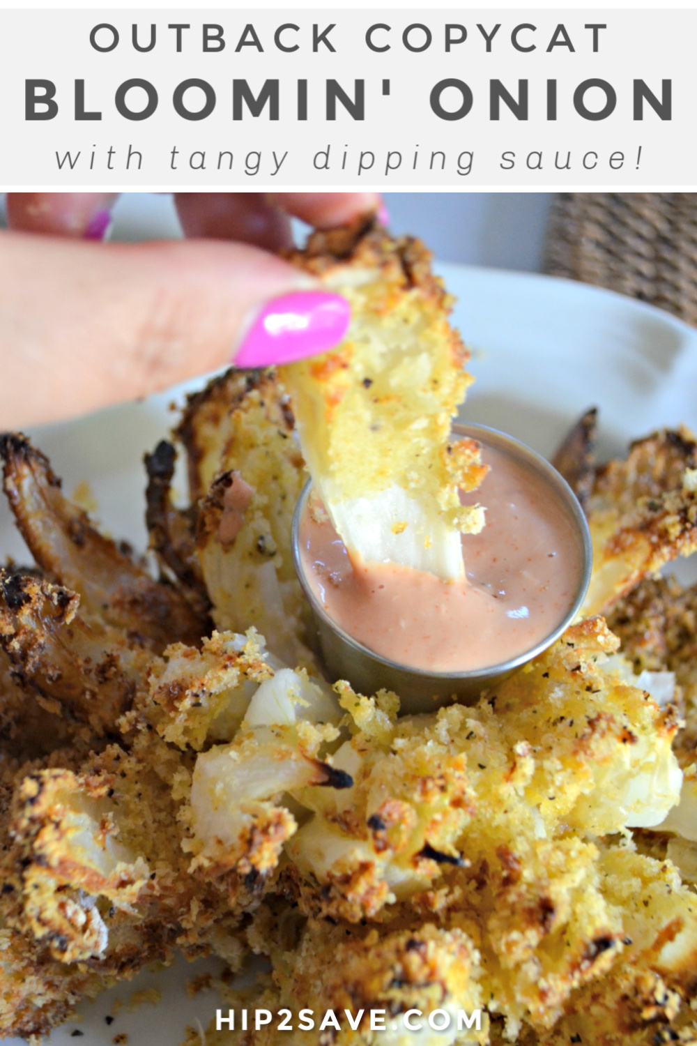 Mix dipping sauce ingredients together and serve with the warm blooming onion. Enjoy!