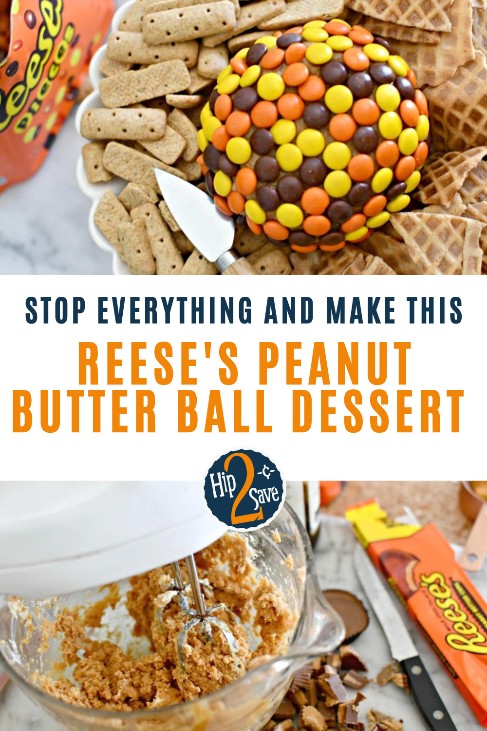 This dessert version of a cheese ball with peanut butter candy will be a giant hit for any occasion or party!