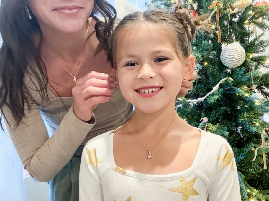 My 6yo LOVES all things pink and sparkly, but I try to keep her jewelry more modest at this age – so nothing too blingy or bulky. This necklace is just 1 CT and has a unique knot or ‘bow’ shape that is so fun for this age! Plus, it’s lightweight and not too flashy for my little girl.