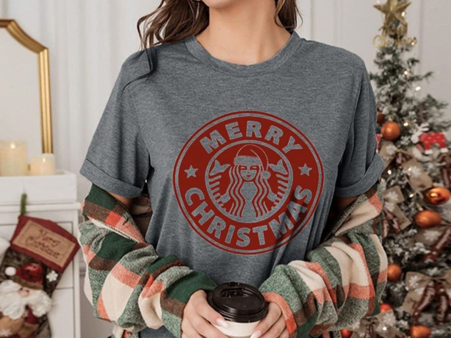 Amazon has an affordable Christmas tee that’s perfect for Starbucks lovers!