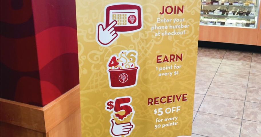 Sign up for My Cold Stone Club Rewards (free to join) and get 25 points just for joining! Once you have 50 points, you’ll get a $5 reward for any purchase over $5. Plus, new members may also receive a free BOGO offer good at participating locations – Woohoo! 🎉