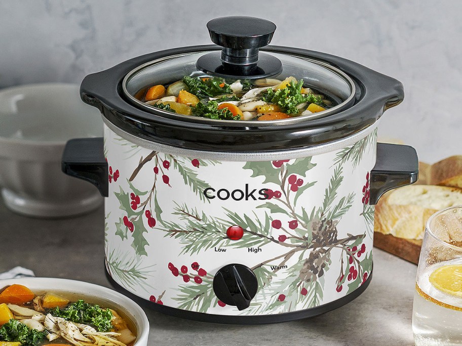 Cooks 1.5-Quart Festive Holiday Slow Cooker in Holly Berry $12.99 (regularly $22)