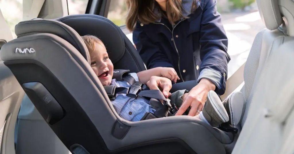 Made for babies and toddlers from 5–50 pounds when rear-facing and from 25–65 lb when forward-facing and for kids up to 49 inches tall, this Nuna RAVA Car Seat is a great option and has tons of 5-star reviews online!