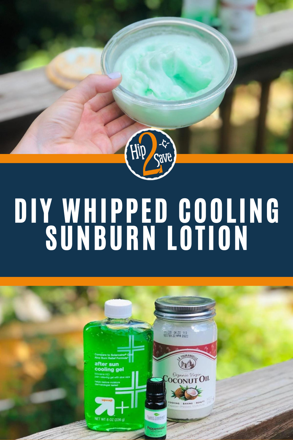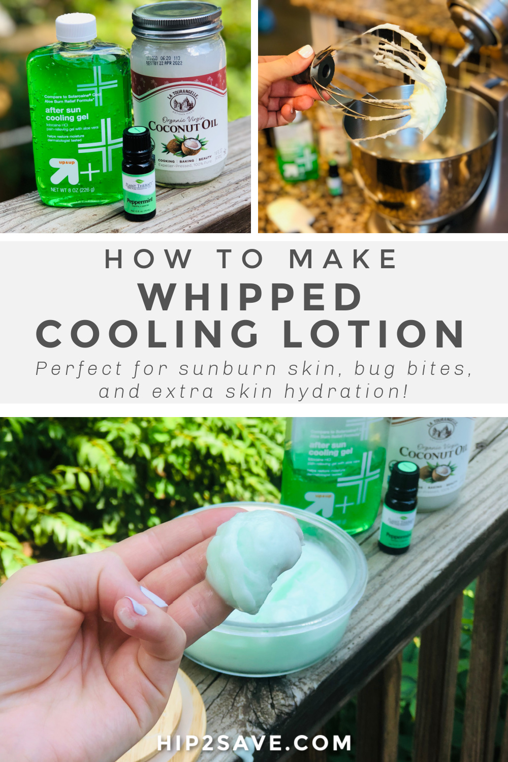 My Hip sidekick, Lina, came up with the original recipe for this whipped cooling sunburn lotion. Here’s what she had to say about it: