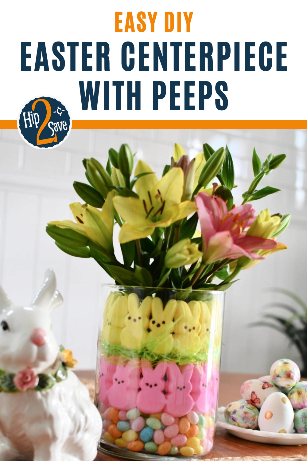 Peeps decorations are poppin’ this spring! Create this inexpensive Easter centerpiece in just a few minutes!
