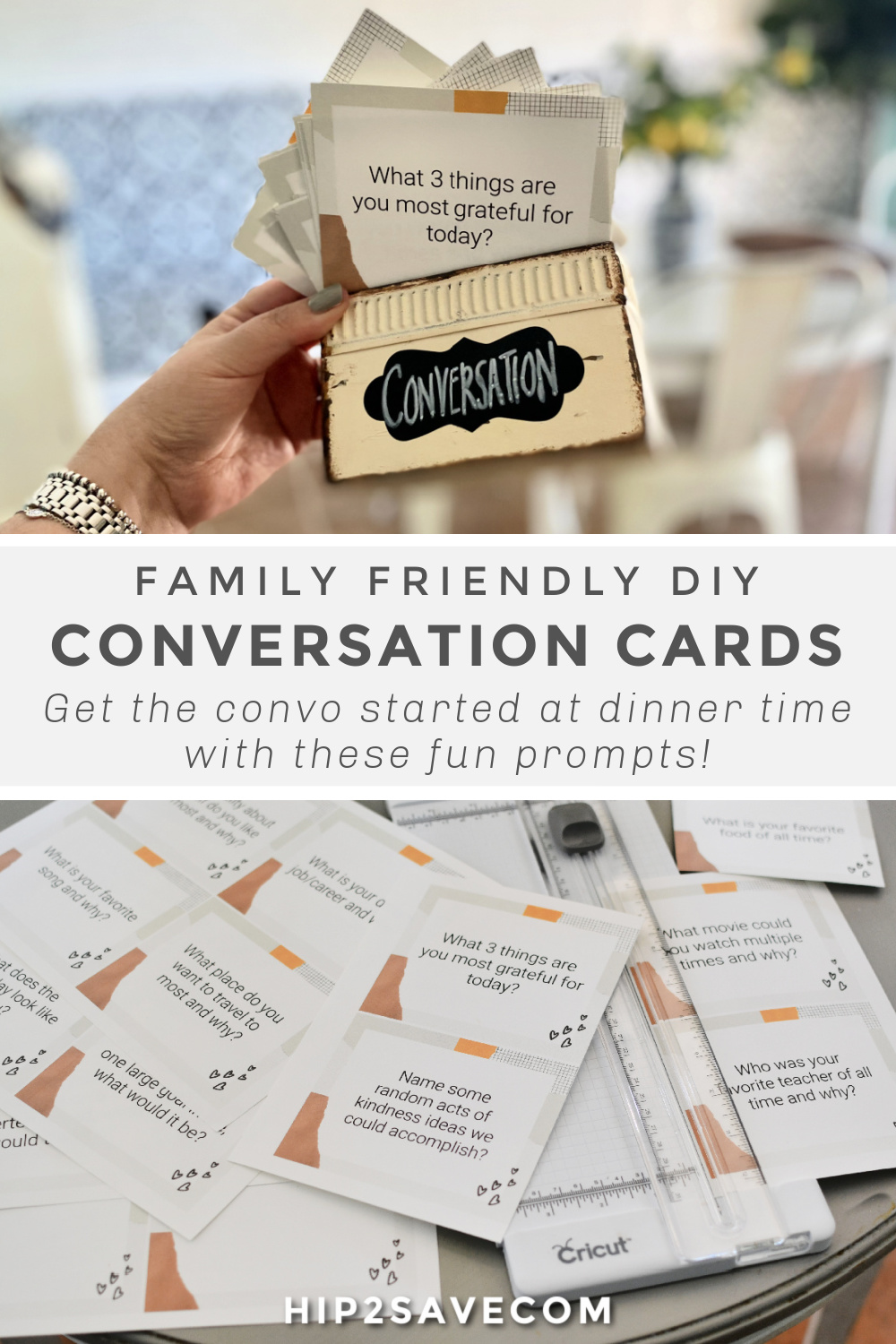 - Consider having your conversation cards laminated if you’ll be using them at the table so you can wipe off food/drinks.