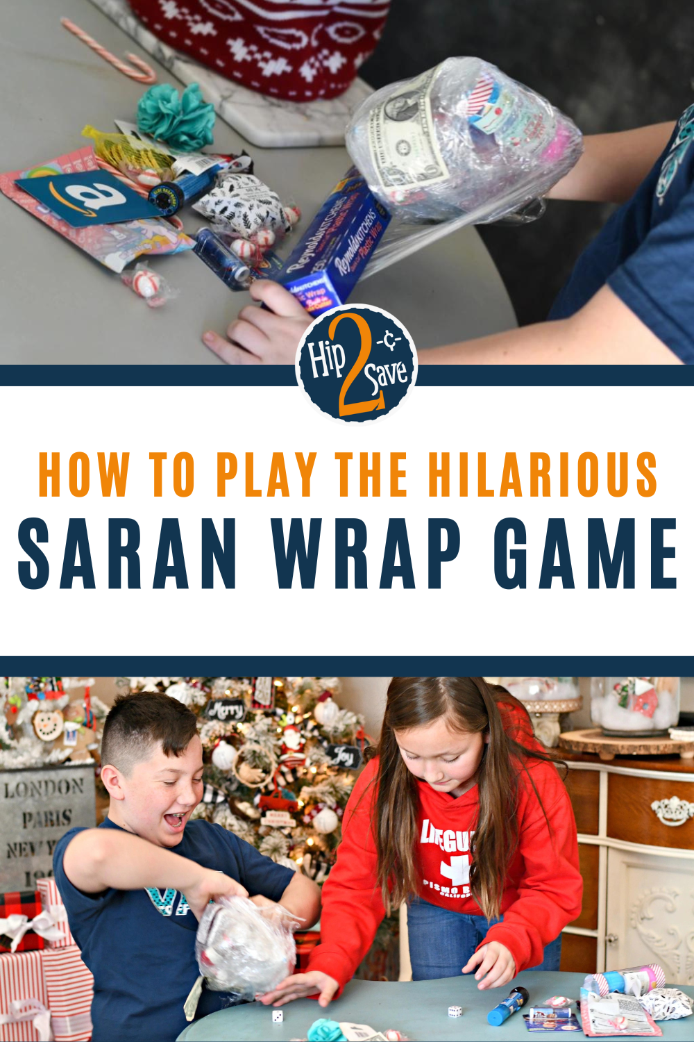 You’ve gotta check out this popular Saran wrap ball game that’s sure to take over every holiday party this Christmas and New Year’s Eve! Participants essentially unwrap fun prizes layered inside a giant ball of plastic wrap. It creates so much laughter and silly fun, and the best part is anyone can join in at any age!