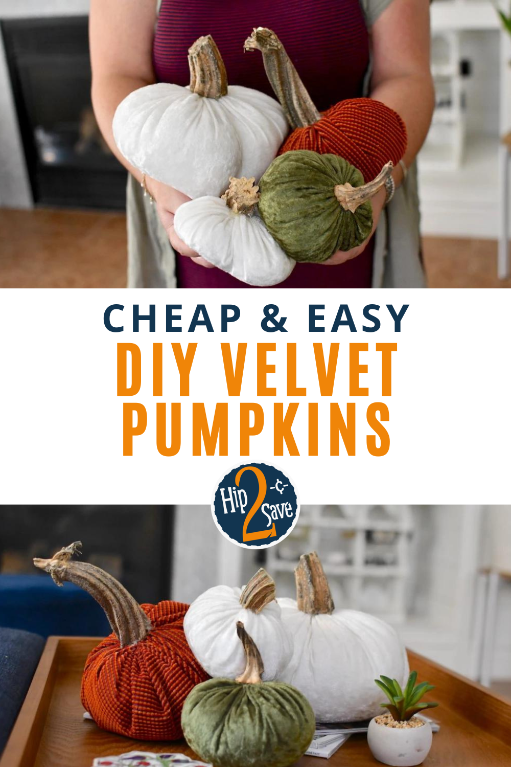 Better yet, velvet pumpkins make for some gorgeous and unique fall home decor, so here’s a fun DIY tutorial so you can make your very own velvet pumpkins at home for cheap!