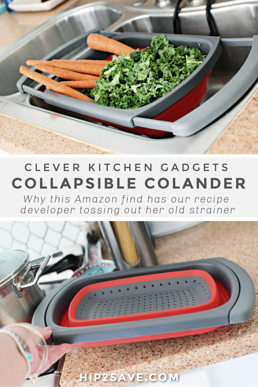 I said goodbye to my other colander and am super happy with this silicone collapsible version. It even has convenient side handles that extend in and out so that you can set it over the kitchen sink which makes food prep easy. It’s also simple to wash and then fold down and store for next time.