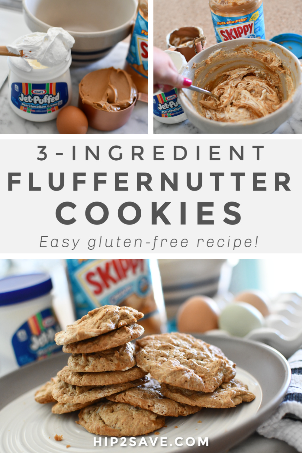 Just three ingredients are needed for these flourless peanut butter and marshmallow cream cookies!