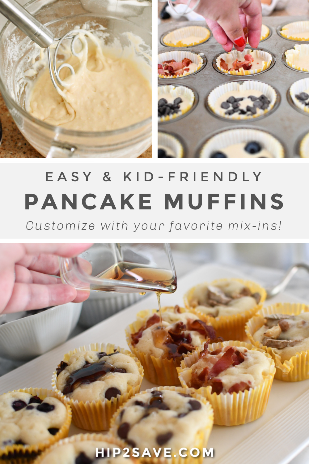 These kid-friendly muffin-style pancakes are a fun and easy way to make breakfast… and the best part is everyone can choose their own creative mix-ins.