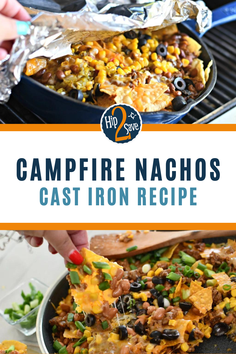 These easy layered skillet nachos can be made over a campfire, on a BBQ grill, or in your oven using all your favorite add-ins.