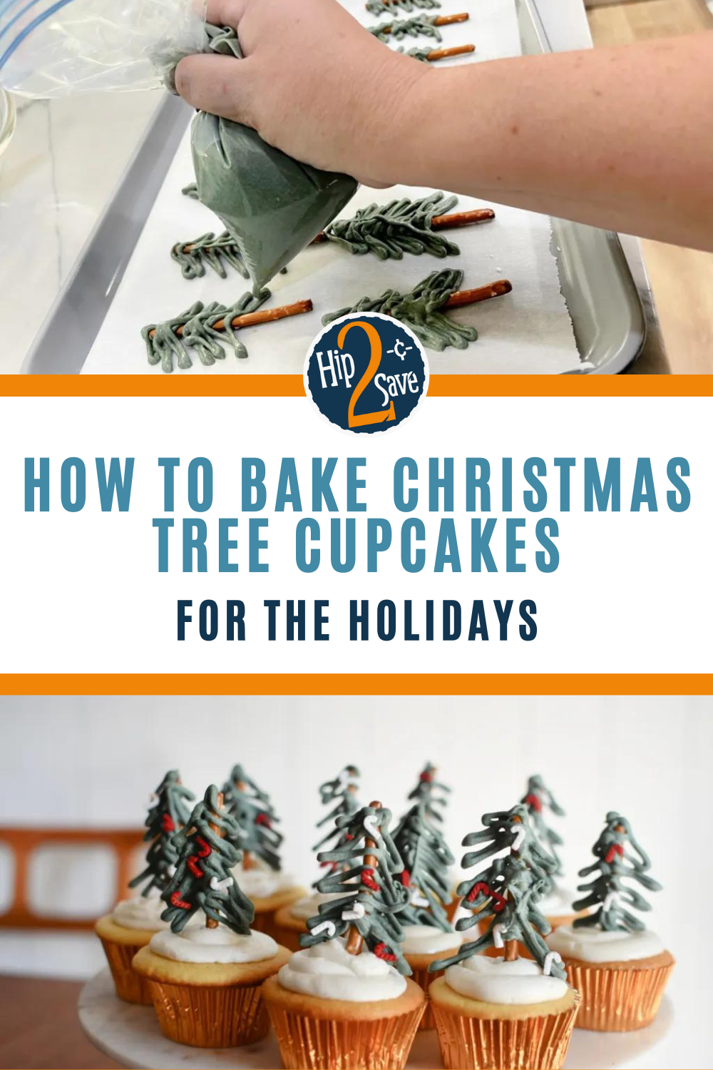 Create easy and delicious trees from candy melts and pretzels to top festive Christmas cupcakes this season.