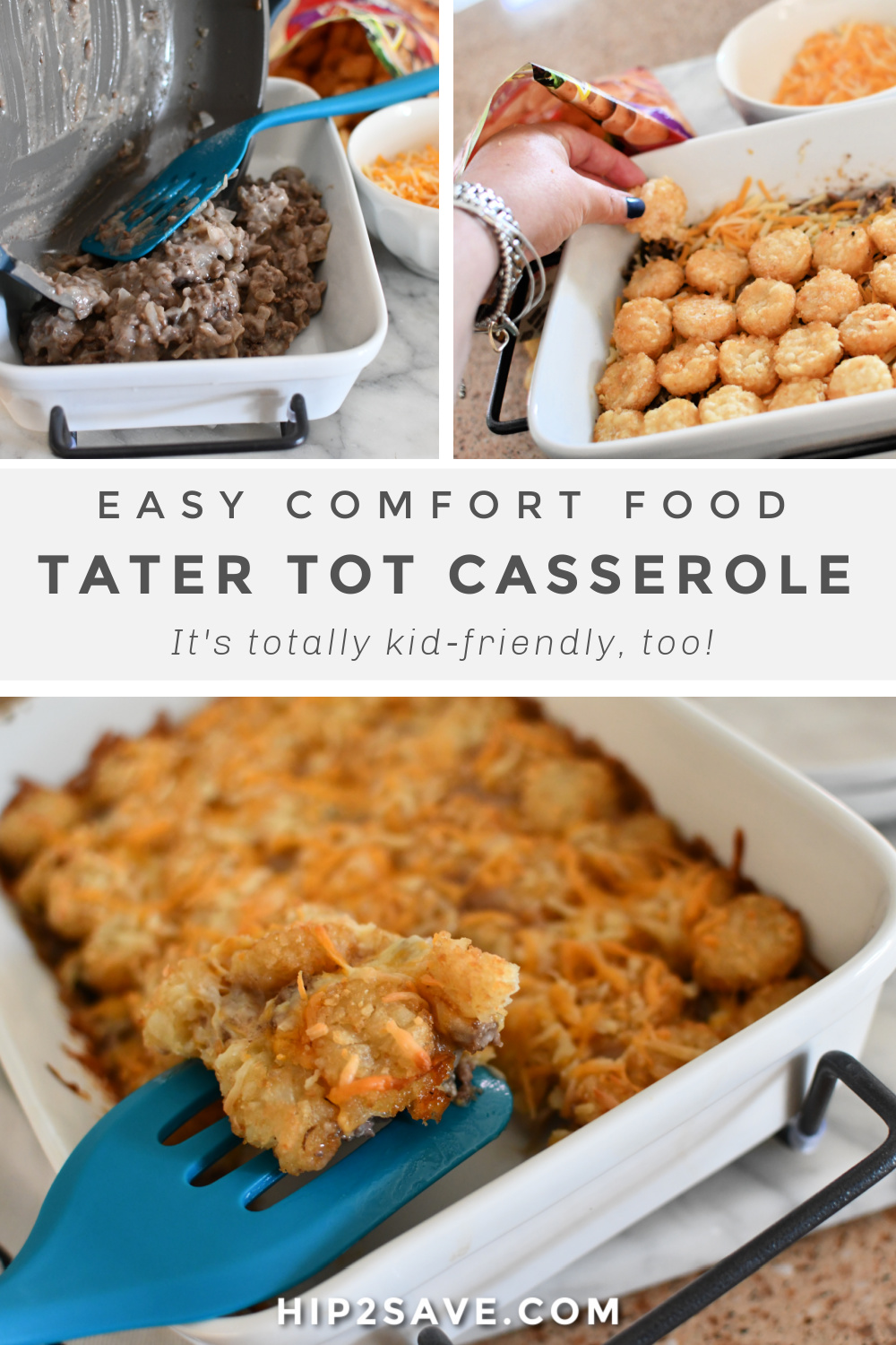 Tater tot casserole is an easy and comforting hot dinner that the kids will eat!