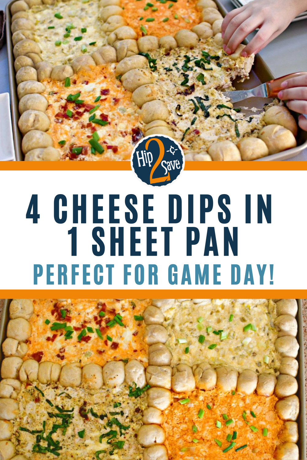 Fun Game Day Appetizer: 4 Cheese Dips On 1 Sheet Pan