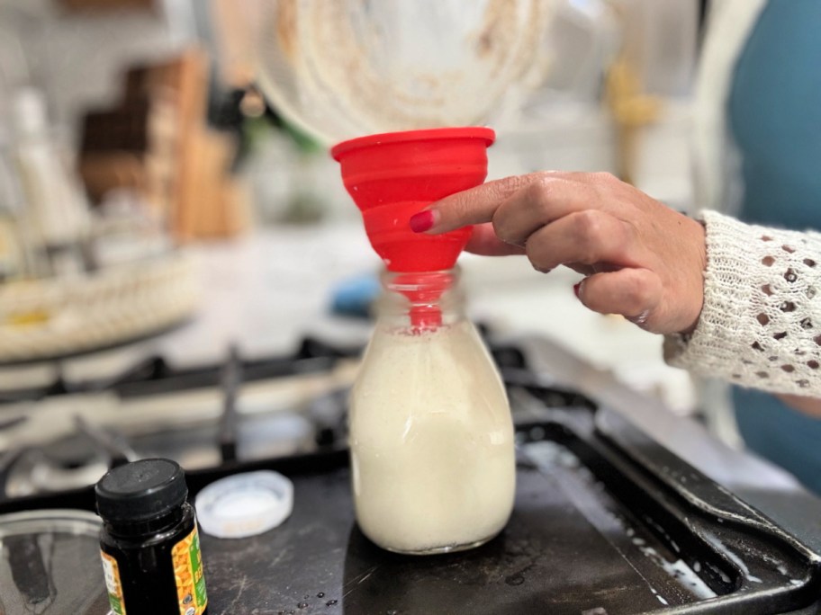 - if you are curious about my handy mini jar funnel, you can find them on Amazon, and here are some similar 16 oz glass milk bottles!