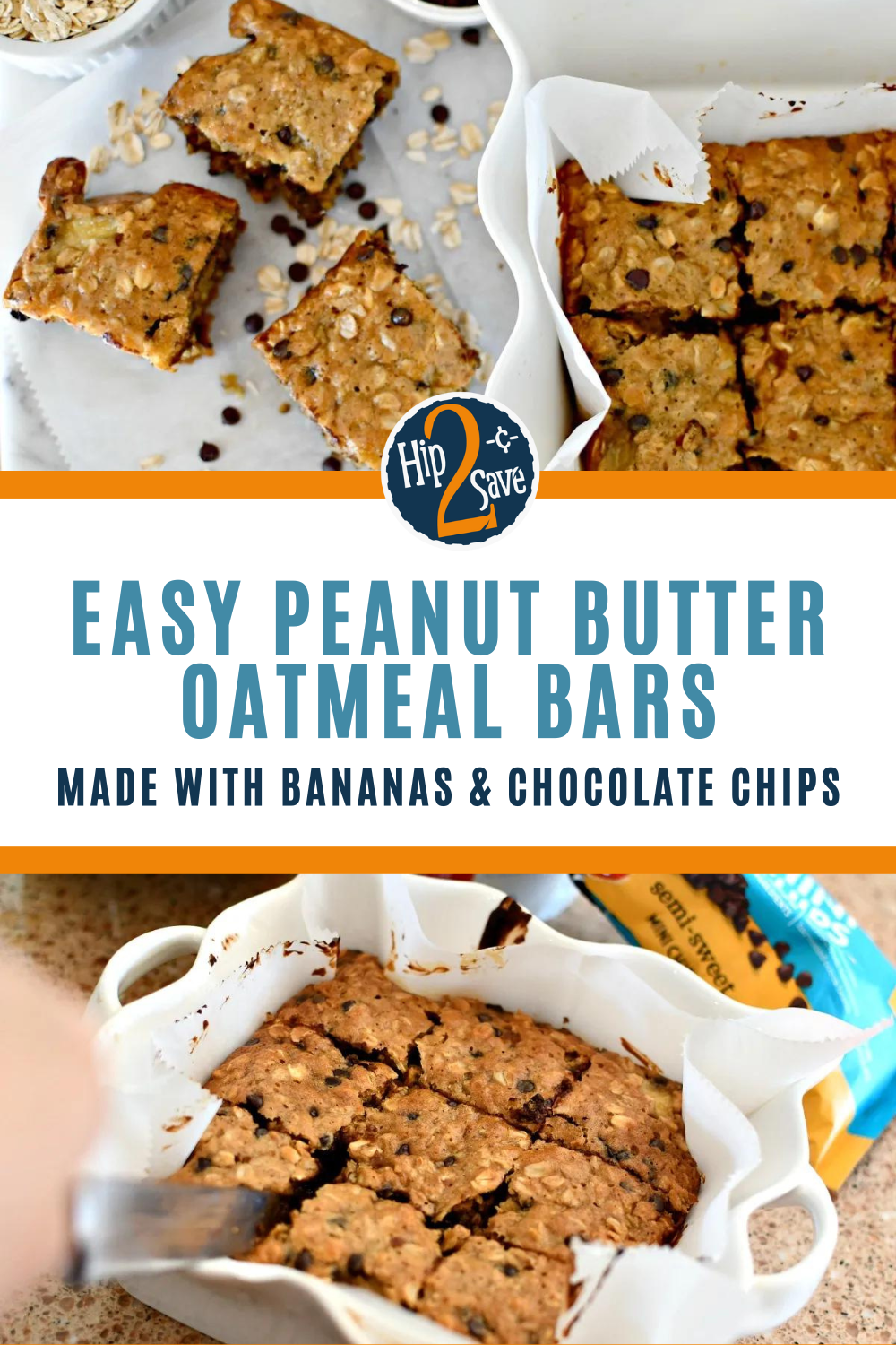 Whip up these peanut butter oatmeal bars for an easy and delicious breakfast. They are similar to classic oatmeal chocolate chip bars but better!