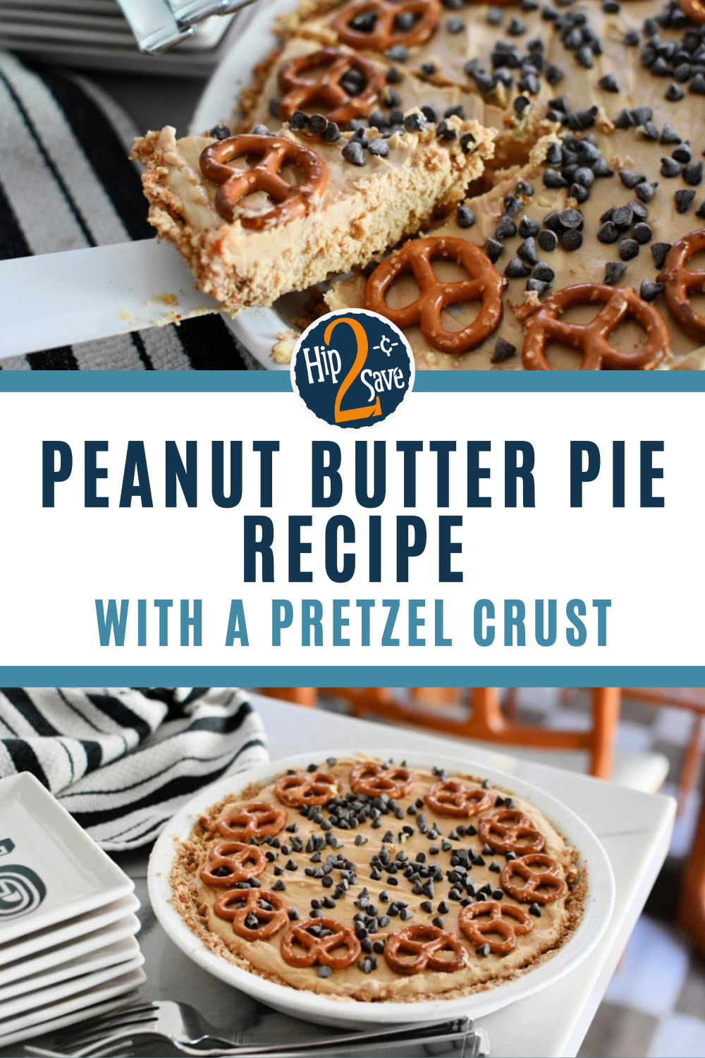 This creamy peanut butter pie with a homemade pretzel crust and chocolate chips on top is the best ever and it’s so simple to whip up!